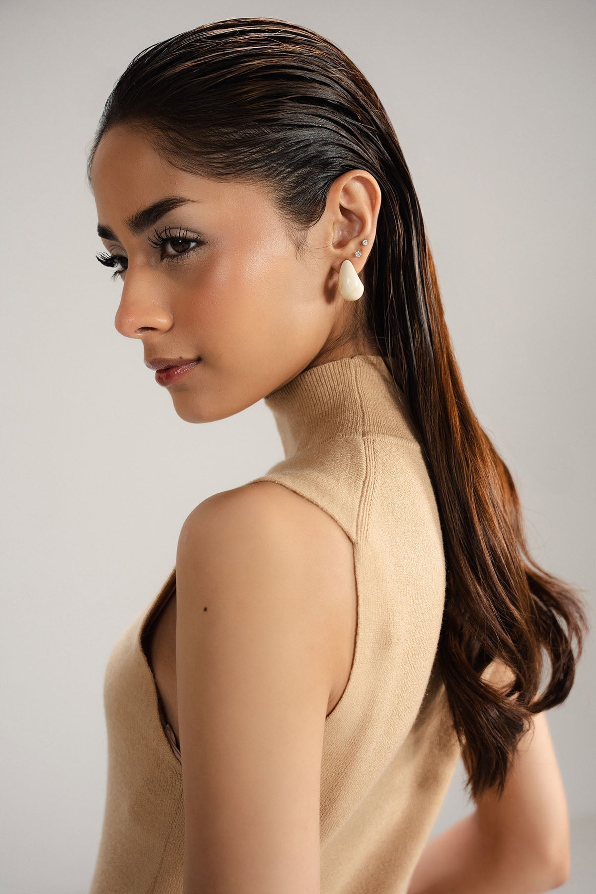 This knitted sleeveless high-neck top offers a sleek, tailored fit, making it ideal for layering or wearing solo for a polished, modern look. Perfect as an underlayer beneath winter pieces, it adds both style and versatility to your wardrobe.