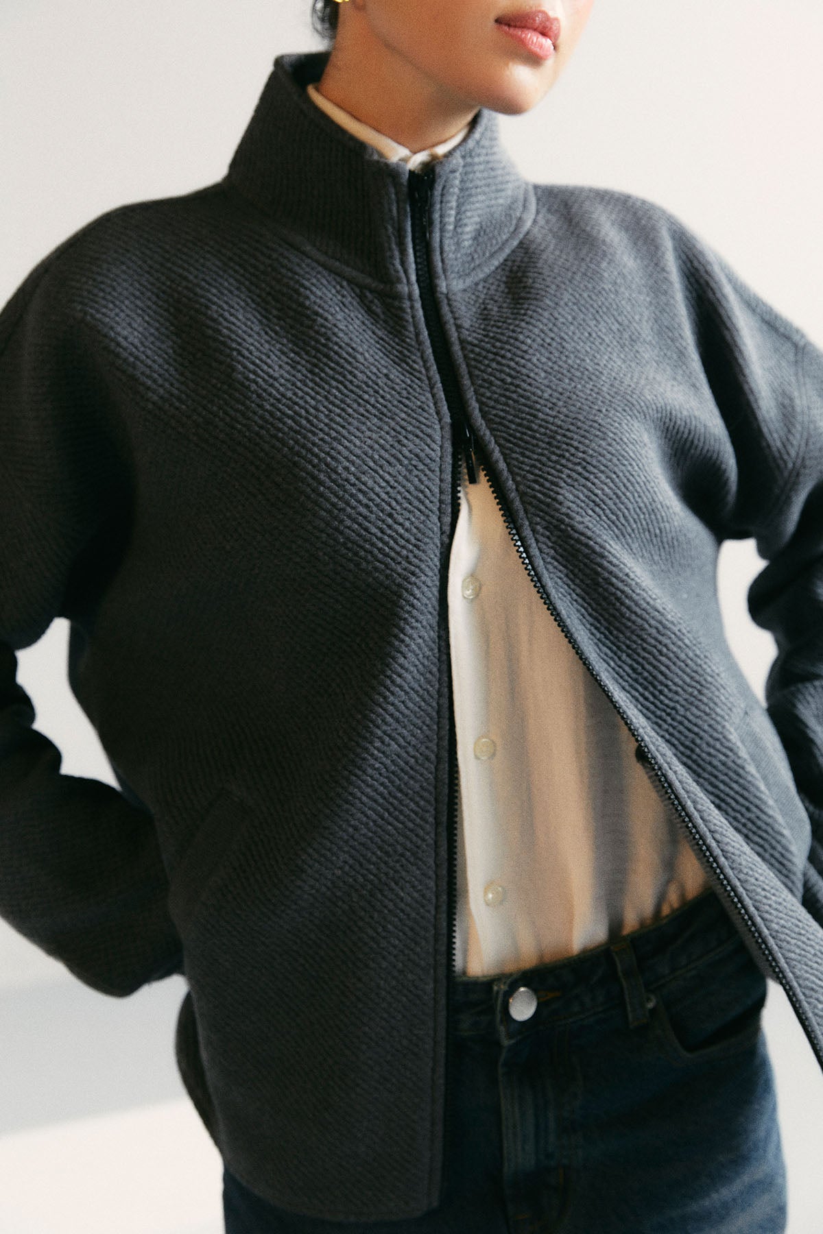 TEXTURED-LUXE ZIP UP JACKET